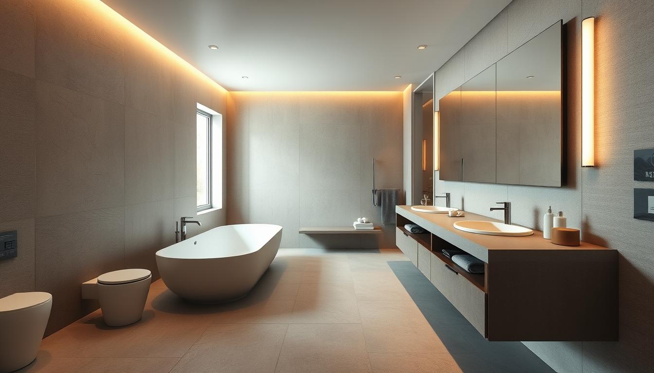 Ein zentraler Trend ist das „Wohnbad“ mit offenen Grundrissen. Begehbare Duschen und freistehende Wannen ermöglichen fließende Übergänge. Solche Konzepte erfordern präzise Planung, um Hygiene, Nachhaltigkeit und Ästhetik zu vereinen.